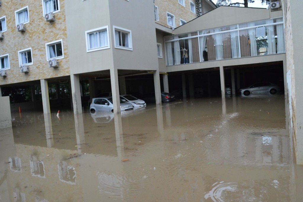 O Hotel Encantos Hortênsias (foto) teve enormes prejuízos com as chuvas. Nove carros ficaram submersos e as estruturas de funcionamento como centrais de telefone e energia, elevadores e almoxarifado foram afetadas seriamente.