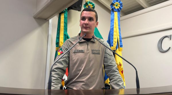 O Capitão Thobias Silveira representou o Pelotão Rodoviário de Gramado e também falou sobre os dias de trabalho intenso vividos em maio: “Agradeço aos vereadores por esta homenagem. Foi um período de esforço contínuo, com nossas guarnições mobilizadas 24 horas por dia em plantão permanente. Atuamos com coragem, bravura e determinação, ao lado de outras instituições que protegem a vida e o bem-estar da comunidade. Tenho certeza de que juntos superamos essa adversidade e seguiremos sempre em busca do melhor para nossa cidade. Como disse a Major, Gramado e o Estado podem contar com o nosso pelotão.”